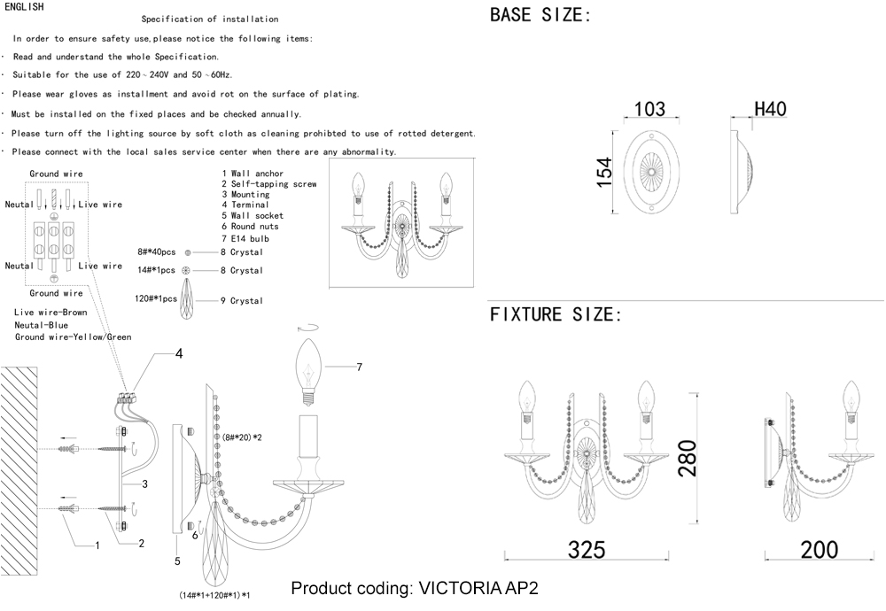 | Альтернативное название | Бра Crystal Lux VICTORIA AP2 GOLD/AMBER, 3340/402 |