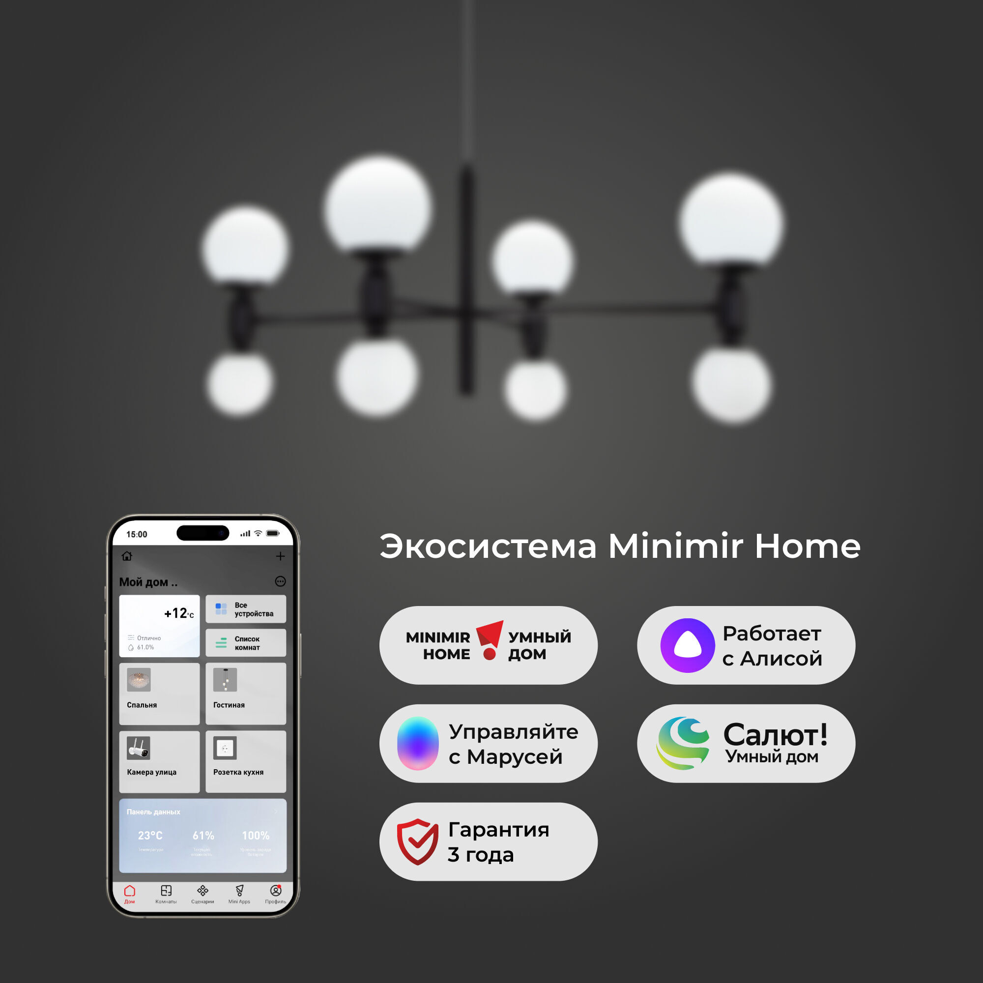 | Тип | Умная подвесная люстра с плафонами |