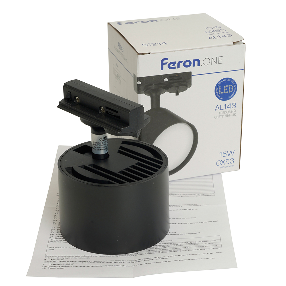 Светильник Feron.ONE AL143 трековый однофазный на шинопровод под лампу GX53, черный, 51214