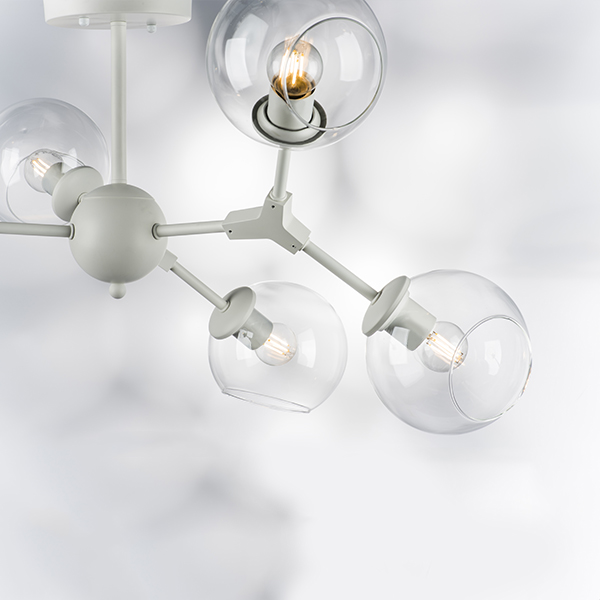 Высота (см): 38; Ширина (см): 94; Вес (кг): 3; Кол-во ламп: 6хE27; Мощность max (W): 40; Цвет основания/цвет стекла или абажура: White;