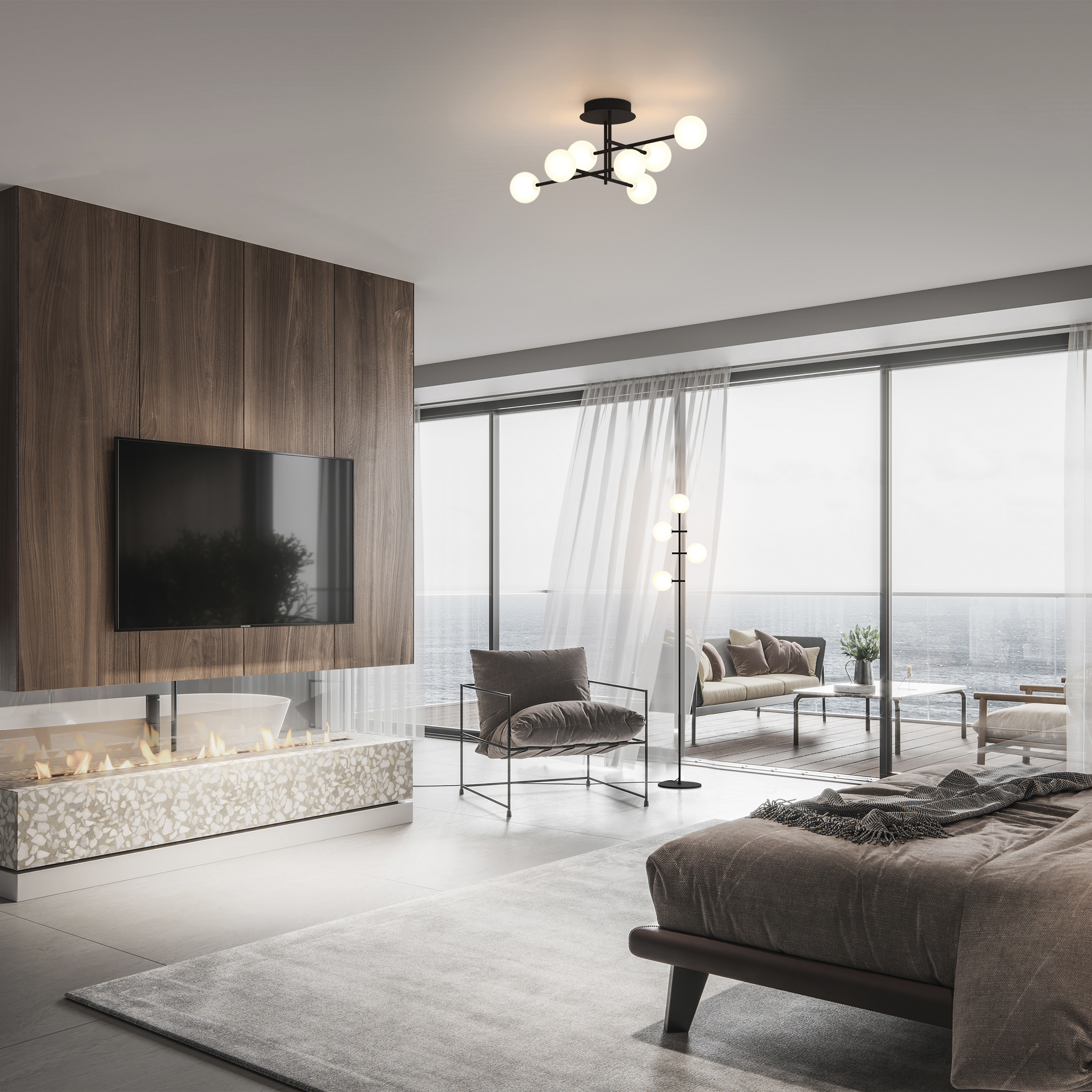сочетание нескольких светодиодных сфер и минималистичных перекладин, которые