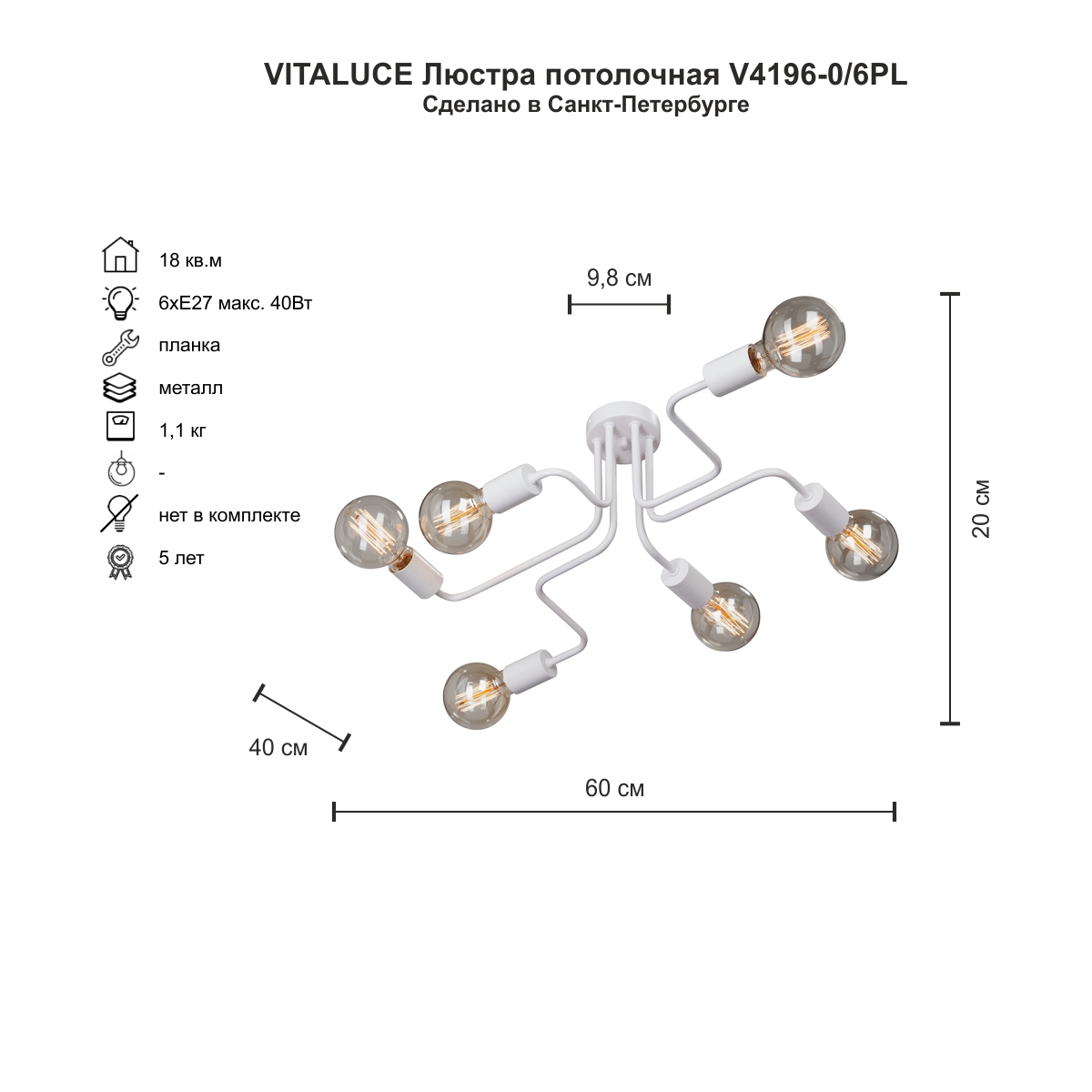 | Альтернативное название | Потолочная люстра Vitaluce 4196 V4196-0/6PL |
