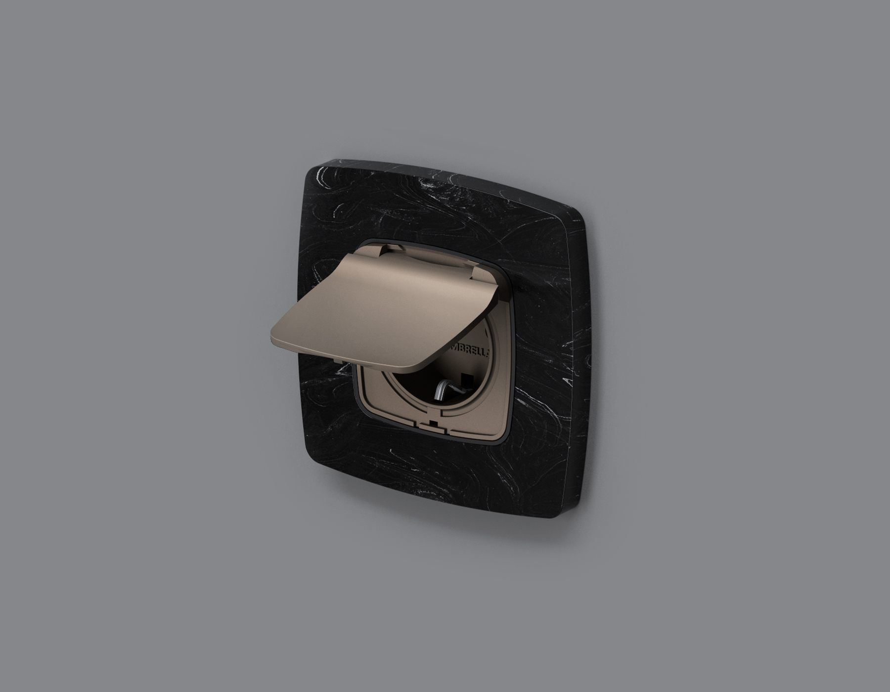 Лицевая панель OMEGA (Темная бронза матовый) для электрической розетки с/з со шторками и крышкой IP44 QUANT (Ambrella Volt, OP6380)